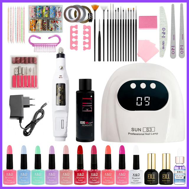 Професійний набір для манікюру з фрезером та лампою SUN S3 USB (48Вт)